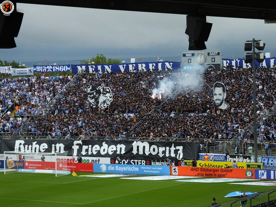 Das Freitagabendspiel der 3. Liga wurde in der Westkurve des Grünwalder Stadions mit einer Gedenkchoreografie eingeleitet, mit der einem bei einem Motoradunfall verstorbenen TSV 1860 München gedacht wurde. „Ruhe in Frieden Moritz“, war auf der Westtribüne zu lesen.