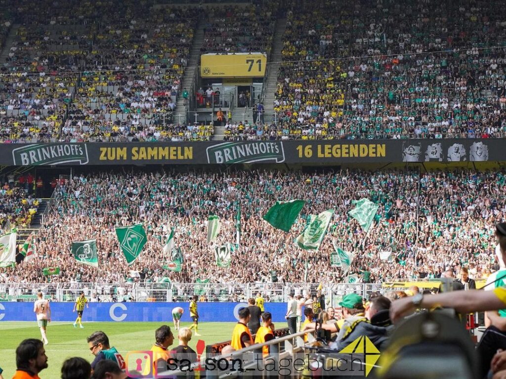 Trotz der hohen Ticketpreise war das Dortmunder Westfalenstadion auch am gestrigen Samstag wieder ausverkauft. Die 81.365 Fans sahen, wie der BVB 2:0 in Führung ging. Ab der 89. Minute drehten die Gäste aus Bremen die Partie jedoch noch und erzielten innerhalb von sechs Minuten drei Tore zum 2-3 Endstand. (Faszination Fankurve, 21.08.2022)