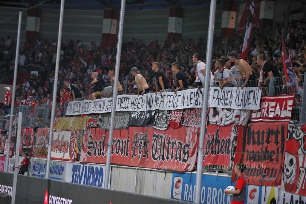 Nachdem in Deutschland zuletzt mehrfach Zaunfahnen von Ultragruppen durch mit Leibchen verkleidete Personen vom Zaun des Gästeblocks geklaut wurden, reagierten Hallescher FC-Fans beim gestrigen Heimspiel mit einem Spruchband auf diesen Trend.