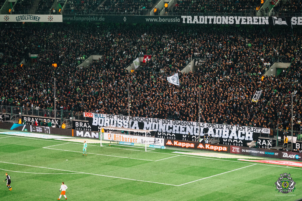 Die Gladbach Ultragruppe betont zudem, dass die Spiele gegen das „Produkt eines Getränkeunternehmens“ keine normalen Spiele seien. „Das erste Spiel gegen Red Bull Leipzig vor vollen Rängen seit dem Beginn der Pandemie steht an. Während das Übel der Geisterspiele vorüber ist, ist das Übel Red Bull jedoch leider geblieben. Die Partie steht dabei besonders wegen zweier Personalien im Fokus. Dem Brief des FPMG Supporters Club vom vergangenen Dienstag bezüglich unseres ehemaligen Sportdirektors können wir uns inhaltlich zu 100% anschließen, möchten an dieser Stelle jedoch vorab auch daran erinnern, dass der Protest gegen das Produkt aus Leipzig allgemein nicht in Vergessenheit geraten darf. Spiele gegen dieses Konstrukt dürfen niemals zur Normalität werden. Und weil dieser Satz schon x-mal in irgendwelchen Stellungnahmen und Publikationen, auch unserer Gruppe, rauf- und runtergebetet worden ist, wiederholen wir ihn hier nochmal in aller Deutlichkeit: Spiele gegen Red Bull sind nicht normal. Wir dürfen uns einfach nicht daran gewöhnen, dass unser Gegner ein reines Marketing-Produkt eines Getränkeunternehmens ist, da der Kampf gegen diese Auswüchse des modernen Fußballs sonst bereits gescheitert ist. Der Fußball hat bereits zu viele Krebsgeschwüre in sich, die Bundesliga beherbergt viel zu viele 50+1-Ausnahmen und Investorenvereine, als dass wir es uns erlauben könnten, die Kritik an unserem Gegenüber verstummen zu lassen. Beim morgigen Spiel werden daher die ersten 19:00 Minuten im Zeichen des bekannten und etablierten Protests gegen Red Bull und für unseren Traditionsverein seit 1900 stehen. Weiterhin zu verdeutlichen, dass die Spiele eben keine Normalität sind, für uns niemals zur Normalität werden und deshalb eben nicht (nur) ein Spruchband aufzuhängen und ansonsten Business as usual zu betreiben, muss das Gebot bleiben. Lasst den Protest nicht verstummen! Lott Jonn!“, so die Ankündigung von Sottocultura.