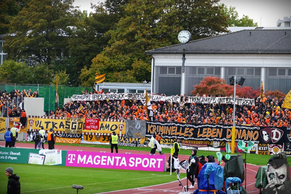 Das Drittliga- Spiel wurde wegen eine Verspätung des Zugs aus Dresden mit 15 Minuten Verspätung angepfiffen. Auf der Gegengerade zeigten Bayreuth-Fans anlässlich des Heimspiels gegen Dresden eine kleine Choreografie mit gelben Fahnen. Im Gästeblock traten zahlreiche Dynamo-Fans mit umgedrehten Bomberjacken auf. “Alle mit dem Zug und Bomberjacke nach Bayreuth”, wurde im Vorfeld für das Auswärtsspiel in der Dynamo-Fanszene mobil gemacht. Zudem zeigten Dynamo-Fans im Gästeblock gestern ein Spruchband, mit dem auf eine Spendenaktion des K-Blocks für die Treberhilfe Dresden beim kommenden Dynamo-Heimspiel aufmerksam gemacht wurde. (Faszination Fankurve, 02.10.2022)