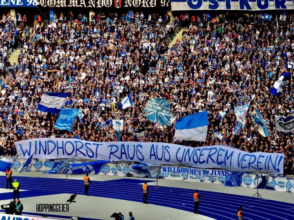 Nachdem die Financial Times einen Bericht über Hertha BSC-Investor Lars Windhorst veröffentlichte, wonach dieser Unternehmensspione auf den damaligen Hertha-Präsidenten Gegenbauer angesetzt habe, forderte die aktive Hertha BSC-Fanszene bereits am Sonntag den Ausschluss von Windhorst. „Windhorst raus aus unserem Verein!“ und „Schmutzkampagnen, Detektive und Millionen werden es nicht beenden. Hertha BSC bleibt fest in unseren Händen“, war auf Spruchbändern in der Ostkurve zu lesen. (Faszination Fankurve, 06.10.2022)