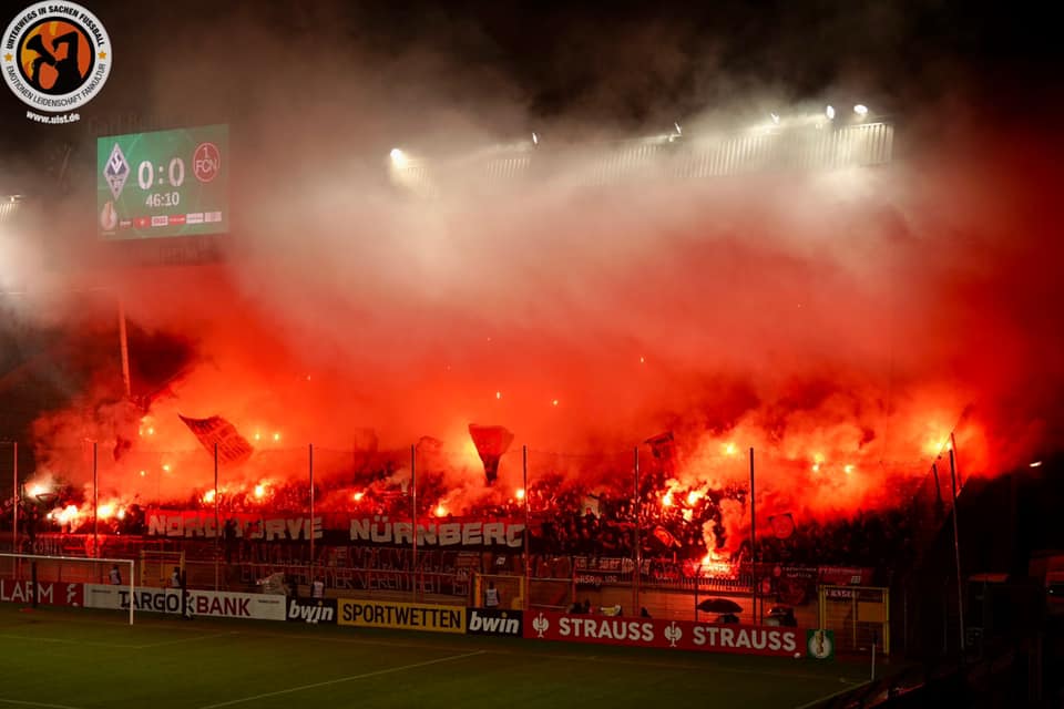 Auf der Otto Siffling Tribüne wurde das gestrige Pokalspiel mit einer “Kämpfen Waldhof”-Choreografie eingeleitet, die mit Pyrotechnik untermalt wurde. Die Nordkurve Nürnberg war in Mannheim in großer Anzahl anwesend und reiste in einem Busknvoi zum Carl-Benz-Stadion. Im dortigen erweiterten Gästeblock zündeten die FCN-Ultras zahlreiche Bengalische Fackeln. (Faszination Fankurve, 19.10.2022)