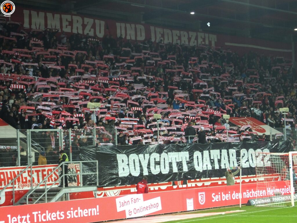 Die Ultras Regensburg haben in den vergangenen Tagen zwei Stellungnahmen veröffentlicht. Im Vorfeld des Heimspiels gegen Eintracht Braunschweig äußerte die Gruppe ihre Sicht auf die anstehende Weltmeisterschaft in Katar und rief zum Boykott der Veranstaltung auf.