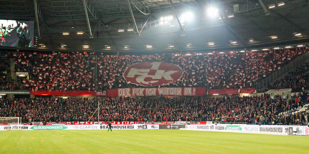 Die Generation Luzifer leitete die Zweitligapartie mit einer dreiteiligen Aktion zu einem Vierteljahrhundert Generation Luzifer ein. Zunächst wurde eine Blockfahne mit einem roten Teufel und einer „Die Augen funkeln“-Botschaft ausgebreutet. Die Augen des Teufels wurden danach dann mit Pyrotechnik zum Funkeln gebracht. Anschließend wechselte das Bild zu einer „Der FCK ist wieder da!“-Botschaft mit einer Vereinswappen-Blockfahne. Zum Schluss folgte noch eine 25 Jahre Generation Luzifer-Blockfahne mit einem „Auf in unser 25. Jahr“-Plakat. Während der gesamten Aktion schwenkten die FCK-Fans links und rechts der Blockfahne rot-weiße Fähnchen.