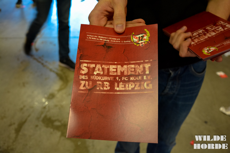 Am Samstagnachmittag gastiert RB Leipzig beim 1. FC Köln im Müngersdorfer Stadion. Die Fanszene des 1. FC Köln wird bei diesem Spiel auf optische Stilmittel, wie Fahnen verzichten, um gegen RB Leipzig zu protestieren. Dies teilte der Südkurve 1. FC Köln e.V. am heutigen Dienstag mit.