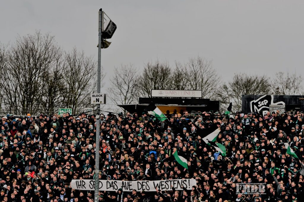 Auf dem Rasen gewann der Tabellenführer aus Münster souverän mit 4:0. Alle Treffer fielen dabei nach Eckbällen. Preußen-Spieler und Fans konnten somit nach Abpfiff die Festigung der Tabellenführung vor Verfolger Borussia Mönchengladbach II feiern. (Faszination Fankurve, 06.02.2023)