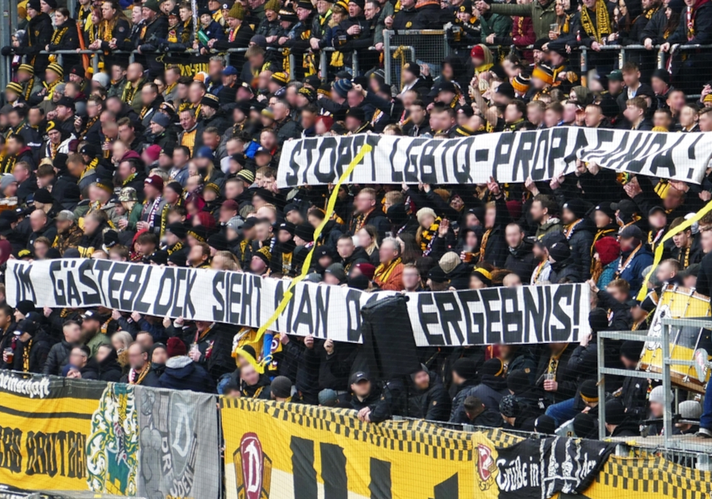 Am Samstag wurde beim Derby zwischen Dynamo Dresden und dem FC Erzgebirge Aue ein Spruchband mit LGBTQ-feindlichem Inhalt im K-Block präsentiert. Die SG Dynamo Dresden nahm am heutigen Montag Stellung zu dem Plakat und distanzierte sich von dem gezeigten Inhalt.