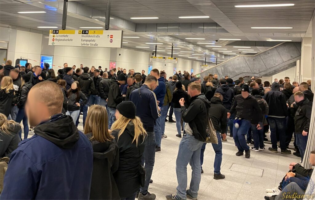 Was die FCC-Fans nach Ankunft in Berlin allerdings erwartete, war nicht nur unvorhersehbar, sondern ein Ausmaß eskalativer Gewalt vonseiten der Polizei, welches absolut nicht tolerierbar ist! Umgehend nach Verlassen des Zuges wurden die FCC-Fans von allen Seiten von vermummten Polizistinnen und Polizisten umstellt und durch körperlichen Zwang in Richtung des hintersten Treppenaufgangs an Bahnsteig 8 gedrückt. Die Aussage der Polizei „[hier] leisteten [die Fans] dann Widerstand“ ist dahingehend eine absolute Frechheit! Als Widerstand wurde hier scheinbar interpretiert, dass die Fans sich nicht schnell genug bewegten, was aufgrund dessen, dass sie von allen Seiten gekesselt waren und am vorderen Ende des Kessels von den dortigen Beamtinnen und Beamten mit Gewalt in Richtung Zug zurückgedrängt wurden (!), auch gar nicht möglich war. Bei einzelnen, insbesondere jüngeren Fans entstand bereits hier eine Paniksituation.