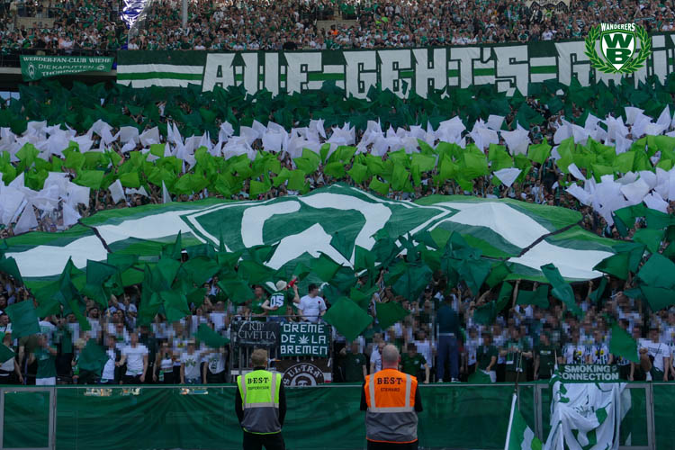 Im Olympiastadion machten sich knapp 25.000 Werder-Fans auf der Marathontor-Seite breit. Im eigentlichen Gästeblock wurde die Partie mit einer „Auf geht’s Grün-Weiße“-Choreografie eingeleitet. In der Heimkurve wurde die Ostkurve Hertha BSC-Fahne mit einem „Gegen Investoren“-Zusatz ergänzt. „Wir sind der Verein – Investoren werden es niemals sein“, lautete zuvor bereits das Motto des Fanmarsches der Hertha BSC-Fans.