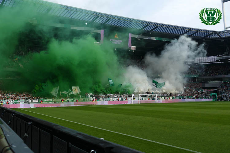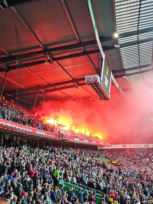 Ultras von Werder Bremen leiteten die Bundesliga-Partie am Samstagabend, die der FC Bayern mit 2:1 gewinnen konnte, mit einer Rauchaktion in der Ostkurve ein. Dabei wurde grüner und weißer Rauch gezündet. Zudem gratulierten Werder-Ultras wegen einer Freundschaft dem SK Sturm Graz noch zum Gewinn des ÖFB-Cups im österreichischen Klagenfurt. (Faszination Fankurve, 07.05.2023)