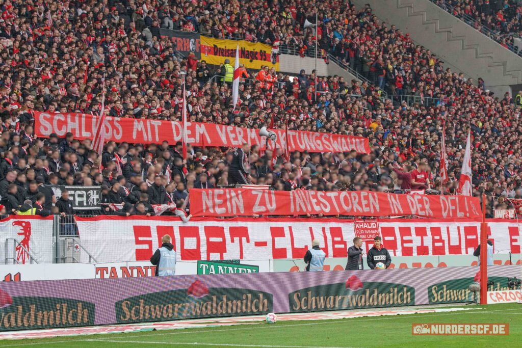 Am 24. Mai 2023 entscheiden die Mitglieder der DFL darüber, ob und wie der Prozess zum Einstieg eines Investors in eine neue DFL-Tochter zur Vermarktung der Bundesliga weitergeführt wird. Die Fanszene des SC Freiburg fordert den eigenen Verein auf, am 24. Mai gegen einen Investoren-Einstieg zu stimmen.