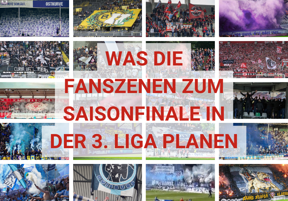 Zum Saisonfinale in der 3. Liga kündigten Fanszenen bereits Aktionen an. Faszination Fankurve gibt den Überblick, was an den letzten Spieltagen von den Fanszenen geplant wird. Ob Autokorso, Fanmarsch oder Mottotour, alle Aktionen im Überblick.