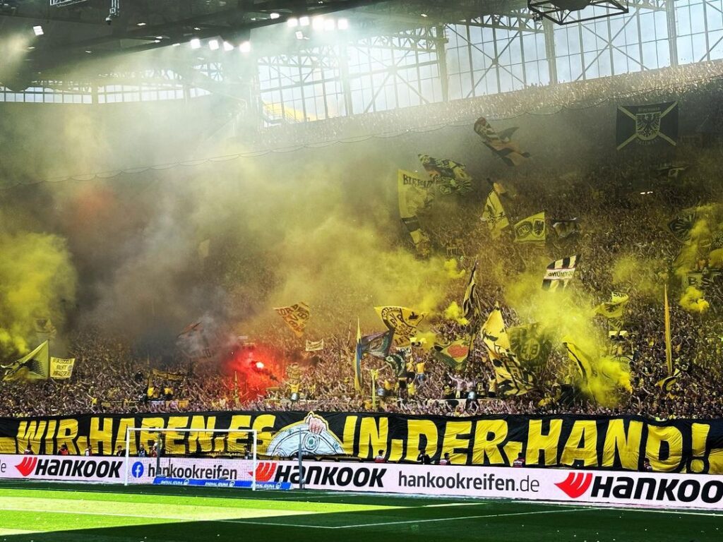 Wer nach Abpfiff dachte, dass die Südtribüne mit Frust auf die verpasste Chance reagierte, der täuschte sich. Mit Gesängen wurden die BVB-Spieler und Trainer Edin Terzić aufgemuntert. BVB-Fans und Mannschaft traten somit auch in der schwersten Stunde geschlossen als Einheit auf. Für die kommende Saison kann dieser Schulterschluss noch hilfreich sein.