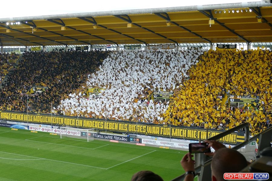 27.300 Fans sorgten beim gestrigen Auftaktspiel der Regionalliga West für eine große Kulisse. Die Ultras von Alemannia Aachen hatten zuvor das Motto „Alle in Gelb zum ersten Heimspiel“ ausgerufen und sich ab 16:00 Uhr zum Fantreff am Stadionvorplatz versammelt.