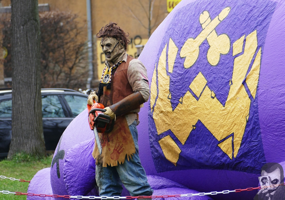 Dort werden 444 Bilderrahmen mit Stücken des Aufblas-Schweins verkauft, das Dynamo-Ultras bei Spielen gegen den FC Erzgebirge Aue präsentierten. Nun wurde das violette Schwein in 444 Einzelteile zerlegt. Diese Einzelteile werden nun für den guten Zweck verkauft. Der Erlös der Aktion kommt der „Fußball gehört den Fans“-Sammelaktion der aktiven Fanszene des FSV Zwickau zu Gute. „Schachter Schlachter aufgepasst! Das verkümmerte lila Schwein musste für den guten Zweck notgeschlachtet werden. Die Hackstücke sind auf 444 dekorative Bilderrahmen verteilt worden. Für 44,- EUR könnt ihr nun eines der limitierten Stücke zum Heimspiel gegen Bielefeld hinter dem K Block erwerben. Der gesamte Erlös fließt in die Kampagne „Fussball gehört den Fans” und somit in die leere Kasse des FSV Zwickau!“, so die Ankündigung der Ultras Dynamo.