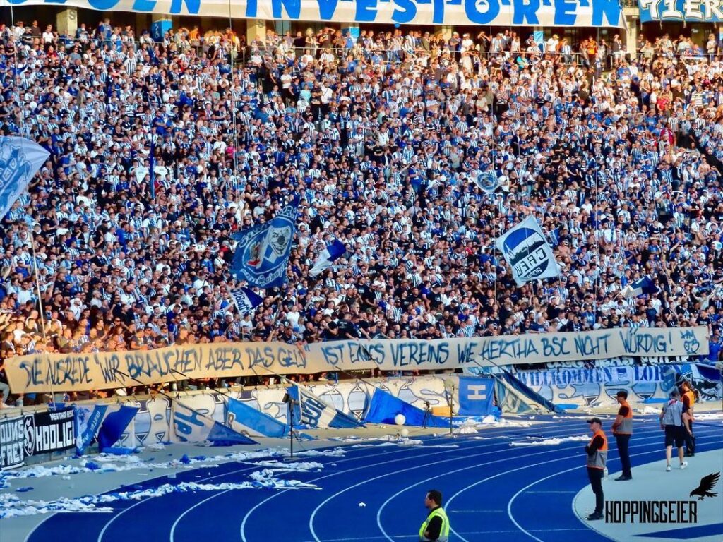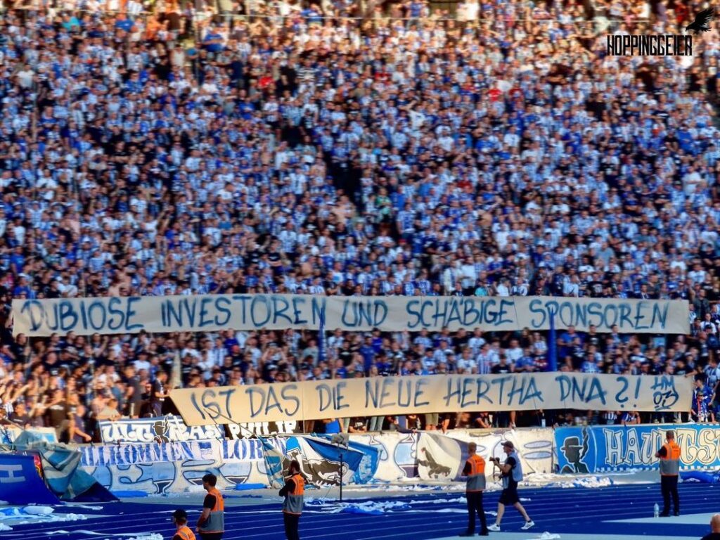 Die Hauptstadtmafia zeigte am Freitagabend noch zwei Plakate zu aktuellen Entwicklungen bei Hertha BSC, wo zuletzt ein neuer Investor und ein Wettanbieter als neuer Hauptsponsor gefunden wurde. „Dubiose Investoren und schäbige Sponsoren – Ist das die neue Hertha DNS?!“ sowie „Die Ausrede ‘Wir brauchen aber das Geld’ ist eines Vereins wie Hertha BSC nicht würdig!“, war dazu auf Plakaten der Gruppe in der Ostkurve zu lesen. Die Hauptstadtmafia zitierte dabei aus dem „Sponsoring-Kodex“ des ursprünglichen „Wir Herthaner“-Wahlprogramms des aktuellen Präsidenten von Hertha BSC, Kay Bernstein. Dort war noch von „Ablehnung der schmutzigen Sportwetten-Kohle“ die Rede.