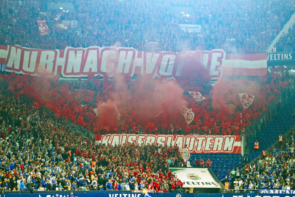 Die etwa 7.000 mitgereisten Fans des 1. FC Kaiserslautern zeigten am Samstagabend im Gästeblock auf Schalke eine „Nur nach vorne Kaiserslautern“-Choreografie mit Fahnen und rotem Rauch. Zu Beginn der zweiten Halbzeit brannten im Gästeblock auf Schalke zahlreiche Bengalische Fackeln sowie ein Feuerwerk ab. Der Wiederanpfiff verzögerte sich dadurch kurzzeitig. 61.801 Fans sahen auf Schalke einen 3:0 Heimsieg der Knappen. (Faszination Fankurve, 06.08.2023)