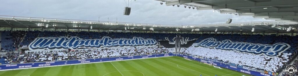 33.000 Fans besuchten am Sonntag das erste Pflichtspiel des Karlsruher SC im neugebauten Wildparkstadion. Die KSC-Fans leiteten die Zweitligapartie mit einer großen „Wildparkstadion für immer“-Choreografie ein.
