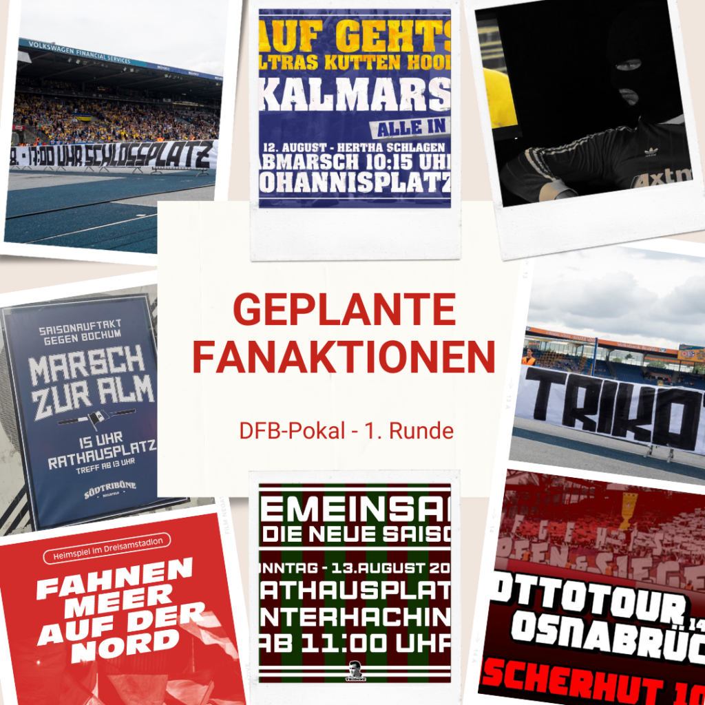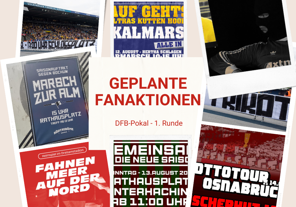 Am heutigen Freitagabend startet die 1. Runde des DFB-Pokals 2023/24. Auch wenn viele geplante Fanaktionen, wie Choreografien und Pyroaktionen, noch geheim bleiben, habe zahlreiche Fanszenen bereits Aktionen für die aktuelle Spielrunde angekündigt.