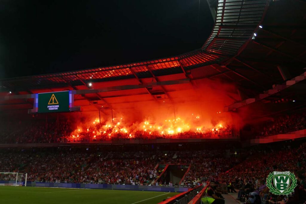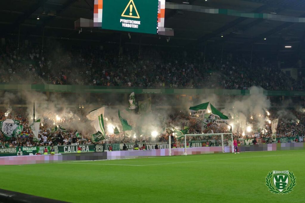 „Diffidati Cosenza – non mollate mai!!”, rief L’Intesa Verde die Stadionverbotler aus dem italienischen Cosenza auf, nicht aufzugeben. Außerdem wurde in der Ostkurve noch zu 20 Jahren Bastion Nord bei Sturm Graz gratuliert. Auf dem Rasen des ausverkauften Weserstadions gewann der deutsche Rekordmeister vor 42.100 Fans am Freitagabend souverän mit 4:0. (Faszination Fankurve, 19.08.2023)