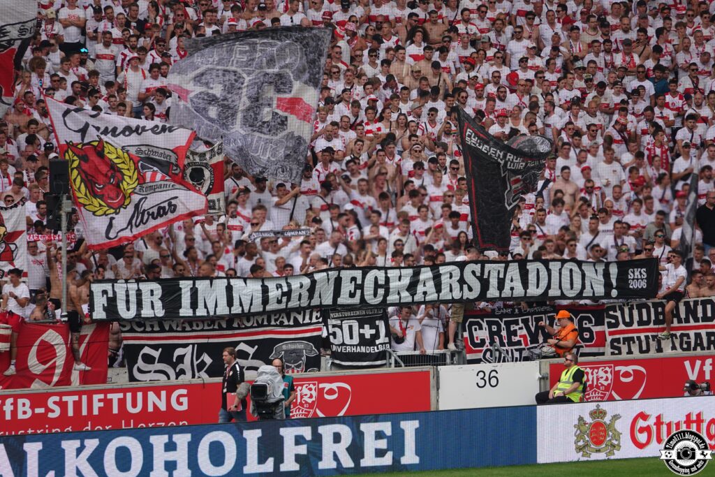 Auf dem Rasen gewann der VfB Stuttgart das Heimspiel gegen Bochum deutlich mit 5:0 und ist damit auch nach dem 1. Spieltag noch Spitzenreiter der Bundesliga. (Faszination Fankurve, 21.08.2023)