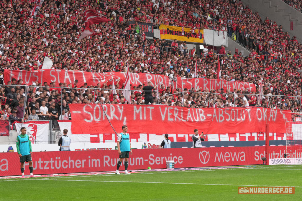 Auf dem Rasen entschied der Sportclub das Heimspiel vor 34.700 Fans im ausverkauften Mooswaldstadion durch ein Tor von Philipp erst in der sechsten Minute der Nachspielzeit. Im Mooswaldstadion konnten die SC Freiburg-Fans gestern erstmals sehen, mit welchen Kunstwerken die Fanszene in der Sommerpause die grauen Betonwände verschönert hat. Noch ist das Projekt nicht abgeschlossen, weitere Wandbilder sollen folgen. (Faszination Fankurve, 27.08.2023)