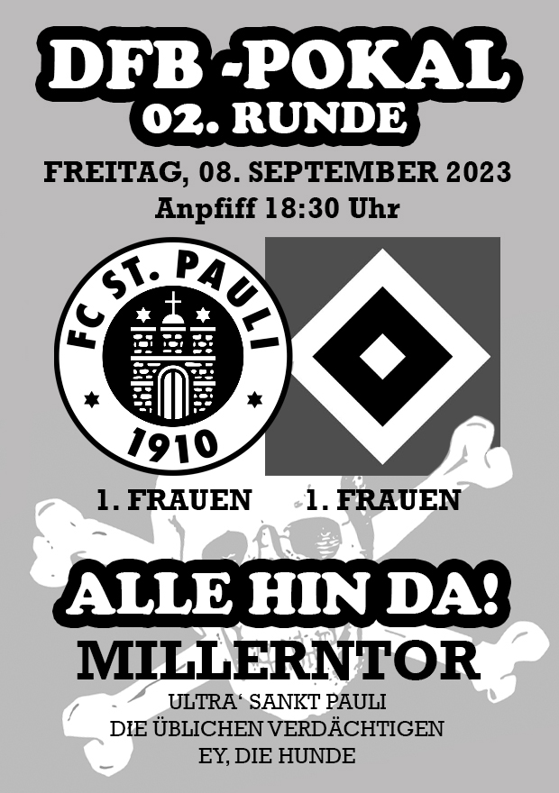 Ultrà Sankt Pauli hat gemeinsam mit „Ey, die Hunde“ und dem Fanclub der 1. Frauen des FC St. Pauli „Die üblichen Verdächtigen“ einen „Alle hin da!“-Aufruf für dieses Derby veröffentlicht.