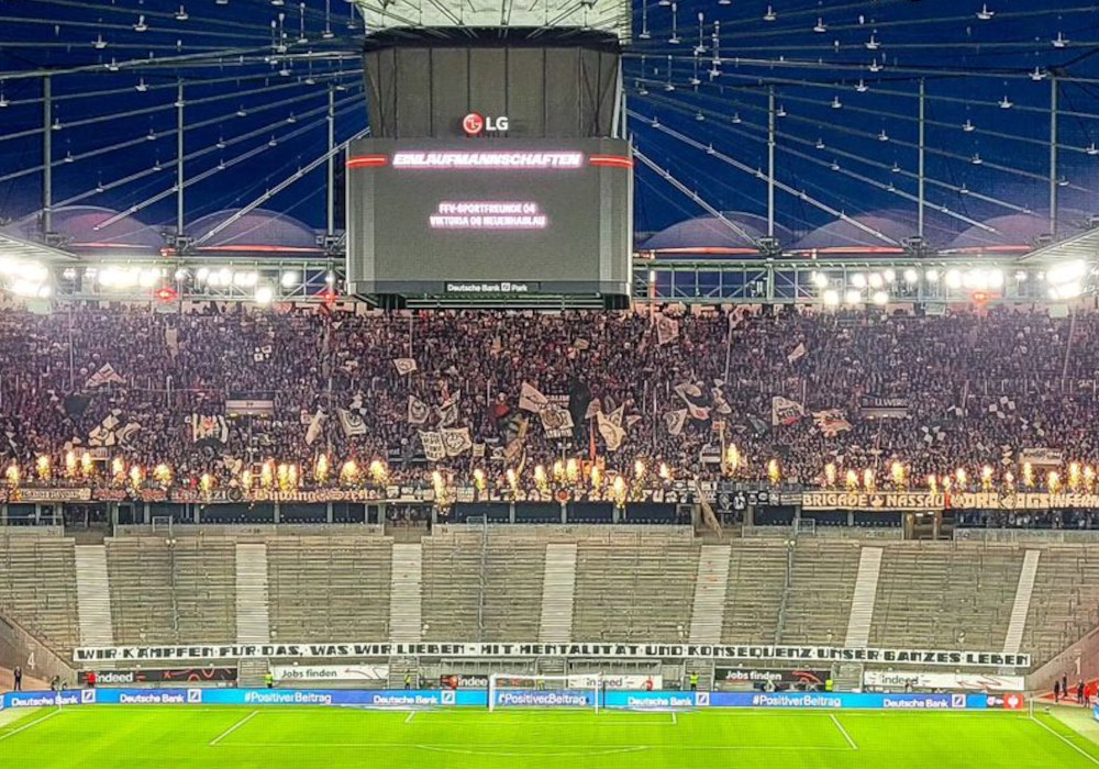 Weil die UEFA die Pyroaktion der SGE-Fans beim Achtelfinal-Heimspiel in der Champions League gegen SSC Napoli in der Nordwestkurve mit einer Strafe belegte, musste der Unterrang der Nordwestkurve beim gestrigen Heimspiel gegen Sofia leer bleiben. Das Stimmungszentrum verlagerte sich gestern somit in den Oberrang, wo seit Saisonbeginn ebenfalls Stehplätze vorhanden sind. Vorm leeren Unterrang war während des Spiels eine „Wir kämpfen für das, was wir lieben – Mit Mentalität und Konsequenz unser ganzes Leben“-Botschaft der Ultras zu lesen. In der ersten Reihe des Oberrangs wurde die gestrige Europapokal-Partie zudem mit einer Pyroshow eingeleitet. Durch einen 2:0 Heimsieg qualifizierte sich die Eintracht für die Gruppenphase der Conference League.