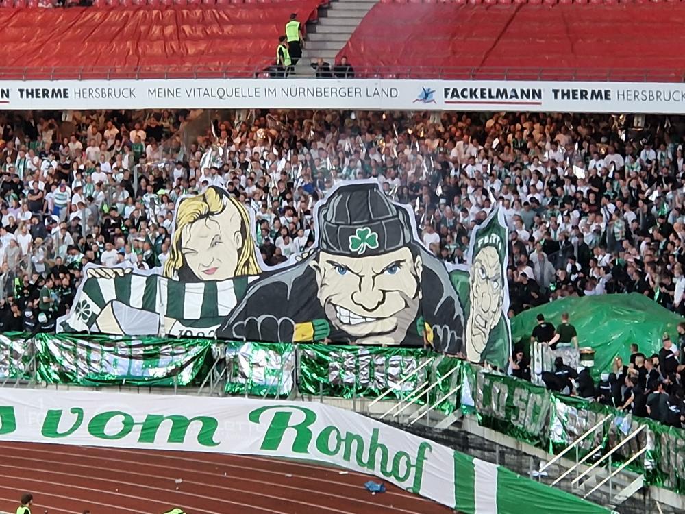 Die Fürther Fanszene traf sich bereits am Freitagnachmittag am Hauptbahnhof in Fürth, von wo aus es mit Sonderzügen der U-Bahn bis zur Nürnberger Messe ging. Von dort liefen die Kleeblatt-Fans in einem Marsch zum Gästeblock des Max-Morlock-Stadions.(Faszination Fankurve, 15.09.2023)