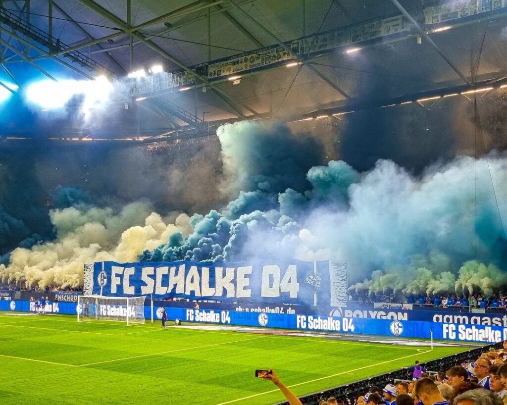 Um die eigene Mannschaft dennoch optisch zu unterstützten, setzten die Ultras des FC Schalke 04 beim Samstagabendspiel der 2. Bundesliga gegen den 1. FC Magdeburg deshalb auch eine Rauchaktion, statt auf eine Choreografie. Hinter einem überdimensionalen „FC Schalke 04“-Schal zündeten die Schalker Ultras in der Nordkurve Rauch in einem Muster in den Vereinsfarben. Mit einem „Choreoverbot aufheben! Sofort!“-Spruchband untermauerten die Ultras Gelsenkirchen ihre Forderung nach einer Aufhebung des Choreografie-Verbotes. Mit einem „Problemfenster“-Banner samt Pfeilen wurde zudem erneut die Einsatzzentrale in der Nordkurve auch optisch markiert.