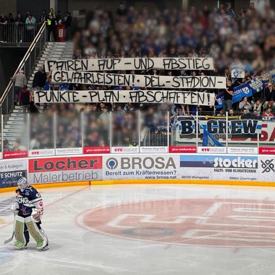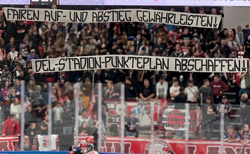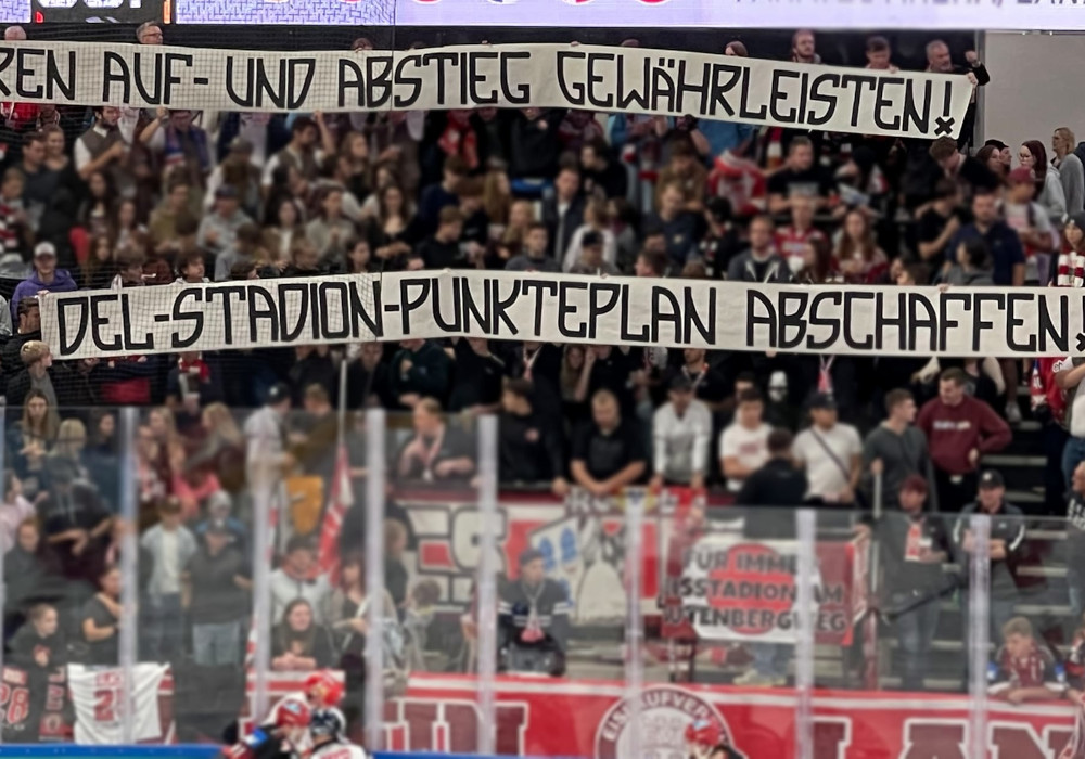 Unverständlich finden die Fanszenen jedoch den DEL-Stadion-Punkte-Plan. Dieser sieht vor, dass das Eisstadion eines DEL-Vereins mindestens 4.500 Zuschauer fassen muss. Außerdem muss eine Marke von 8.000 Punkten erreicht werden, wobei Stehplätze (1 Punkt), Sitzplätze (2 Punkte) und VIP-Plätze (4 Punkte) unterschiedlich schwer wiegen.