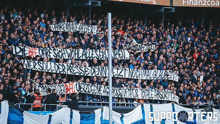 Andere Transparente richteten sich auch gegen die Berichterstattung der Presse über die Vorfälle am Braunschweiger Hauptbahnhof: „Die BFE darf sich wohl alles erlauben, wer soll der Presse denn jetzt nochmal glauben?“ Die Fanszene Paderborn bedankte sich zudem bei allen Helfern und forderte eine sofortige Aufarbeitung der Geschehnisse. (Faszination Fankurve, 24.10.2023)
