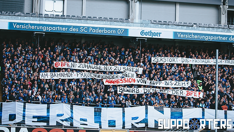 Zum Spiel am vergangenen Samstag gegen den FC St. Pauli hat die Fanszene Paderborn einen Aktionsspieltag ausgerufen. Dieser widmete sich der Problematik von Polizeigewalt, die die Paderborner Fanszene nach eigenen Angaben vor rund zwei Wochen bei Vorfällen in Braunschweig selbst zu spüren bekommen hat.