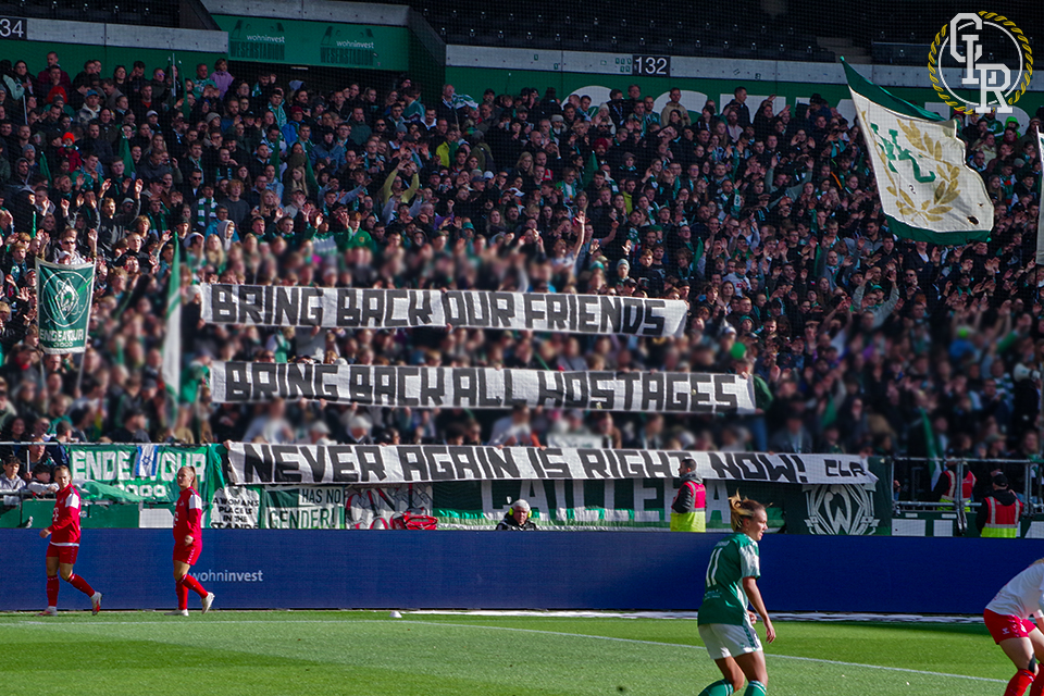 wir sind ein Zusammenschluss aus der Fanszene von Werder Bremen und möchten uns mit folgendem Anliegen an euch wenden: Selbst wenn die Ereignisse Israel für viele Menschen in Bremen und Deutschland vermeintlich weit entfernt scheinen, spüren wir die Auswirkungen des Terrors und Kriegs auch hier in aller Deutlichkeit.