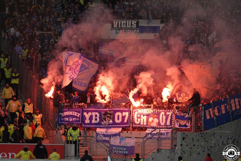 Die Gästefans reisten größtenteils mit Bussen aus dem Kraichgau in die Landeshauptstadt. Lediglich das Vicus Kollektiv setzte bei der Anreise auf die Deutsche Bahn. Im Bereich von Young Boyz und Crescendo Hohenlohe wurden noch vier Bengalische Fackeln angezündet.