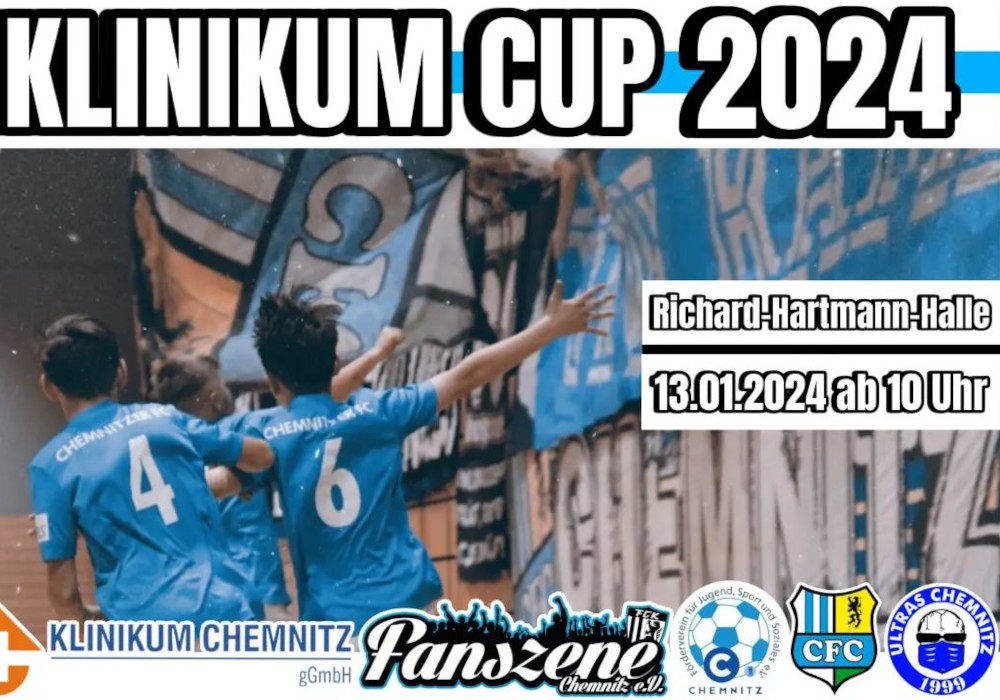 Die Ultras Chemnitz und die Fanszene Chemnitz machen wieder für den Klinikum Cup mobil. Auch im Jahr 2024 sollen die Jugendspieler der Chemnitzer FC in der Hartmann-Halle in Chemnitz lautstark unterstützt werden. Treffpunkt der CFC-Fans ist am 13. Januar 2024 um 09:30 Uhr.