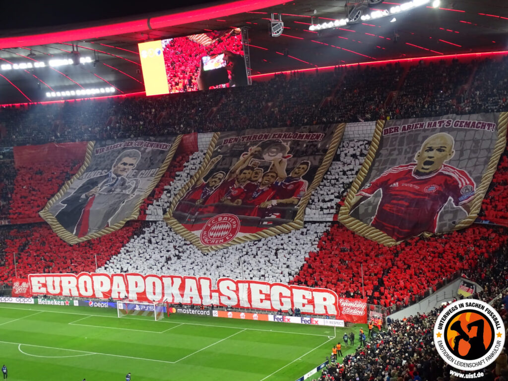 Zum Start ins Jahr 2024 hat die Südkurve München ein Video zur „Wir haben den Cup gewonnen! Den Thron erklommen! Der Arjen hat’s gemacht!“-Choreografie veröffentlicht. Mit der Aktion erinnerten die FC Bayern München-Fans an den Gewinn der Champions League vor zehn Jahren.