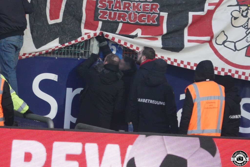 Beim heutigen Bundesliga Spiel zwischen dem VfL Bochum und dem VfB Stuttgart sorgte die Platzierung von Zaunfahnen der VfB-Ultras in der Halbzeitpause für Ärger mit dem Ordnungsdienst. Die Fahnen sollen ein Fluchttor im Gästeblock versperrt haben, dadurch wurde das Spiel erst mit 40-minütiger Verspätung fortgesetzt.