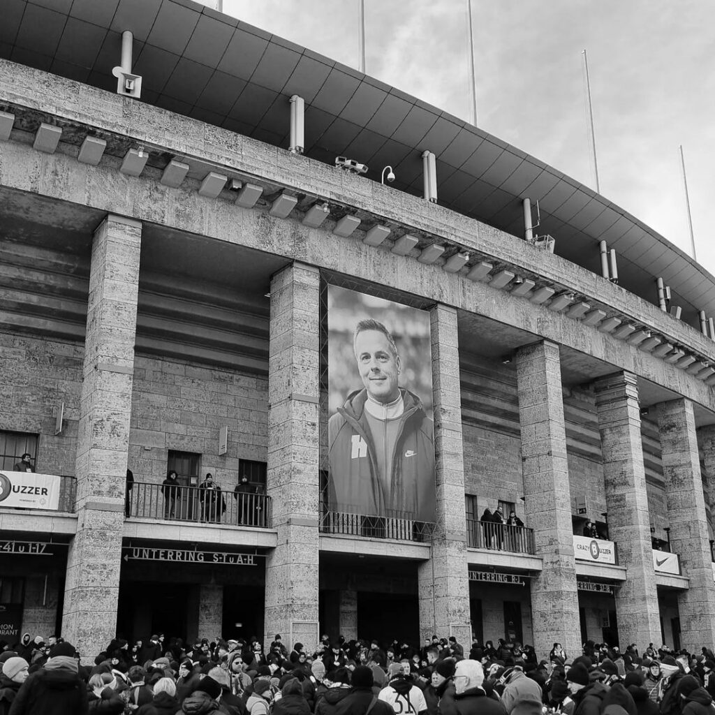Rund 7.000 Menschen zogen am heutigen Vormittag vom Theodor-Heuss-Platz in Berlin-Westend zum Olympiastadion. Hinter einer „In tiefer Trauer um Kay“-Botschaft ging es bis zum Stadion, in dem Hertha BSC am Mittag die Fortuna aus Düsseldorf empfing. Die Harlekins Berlin hatten zu dem Trauermarsch aufgerufen.