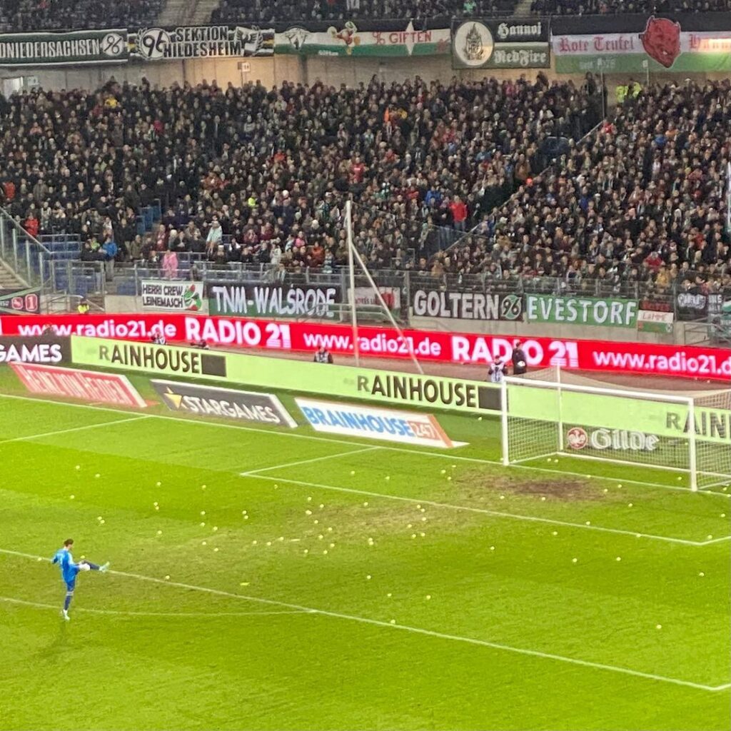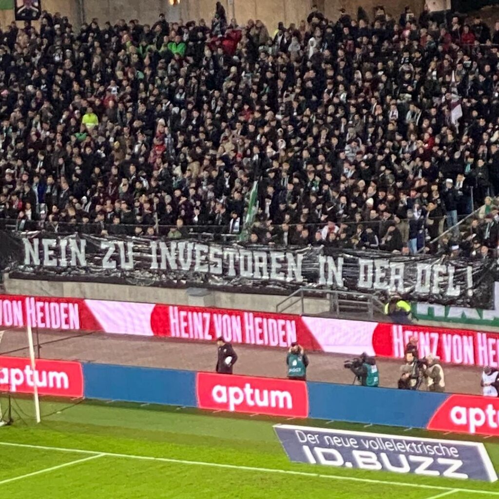 Die Hannover 96-Fans beteiligten sich zudem erneut an den „Nein zu Investoren in der DFL“-Protesten und sorgte mit fliegenden Gegenständen für eine Spielunterbrechung. Hannover 96 gewann das heutige Heimspiel vor 25.100 mit 3:0. (Faszination Fankurve, 26.01.2024)