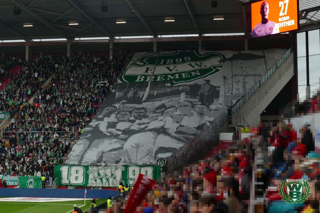 Am heutigen 04. Februar 2024 feiert der SV Werder Bremen seinen 125. Geburtstag. Die Fanszene des SVW organisierte aus diesem Anlass für die Fahrt zum Auswärtsspiel beim 1. FSV Mainz 05 einen Sonderzug. Im Gästeblock wurde zudem eine große Blockfahne präsentiert.