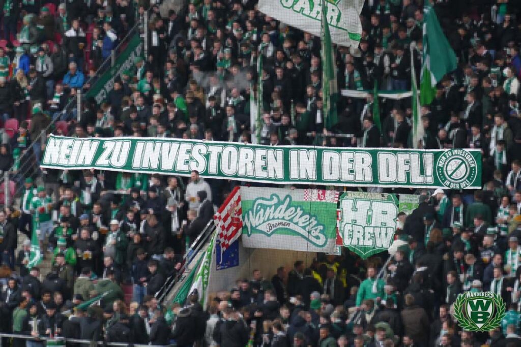 Die Gästefans zeigten im weiteren Spielverlauf ein Spruchband gegen den Einstieg eines DFL-Investors. Auch mit der Sektion Stadionverbot wurde sich solidarisiert. Nach Spielende feierten die SVW-Fans den 1:0-Auswärtssieg mit der Mannschaft, die dabei mit den Jubiläumsschals der Bremer Ultras für ein Foto posierte.