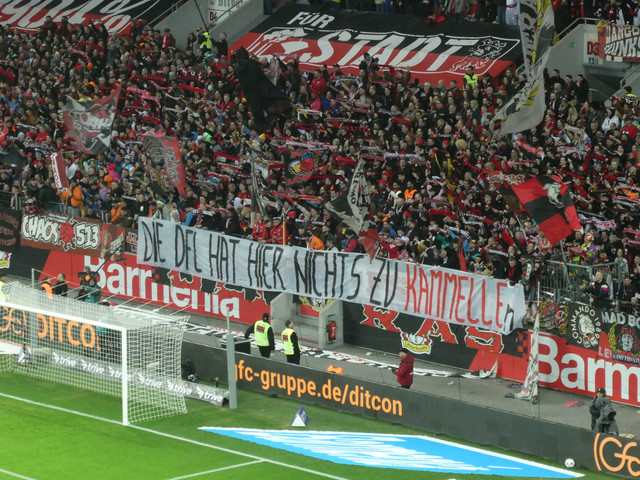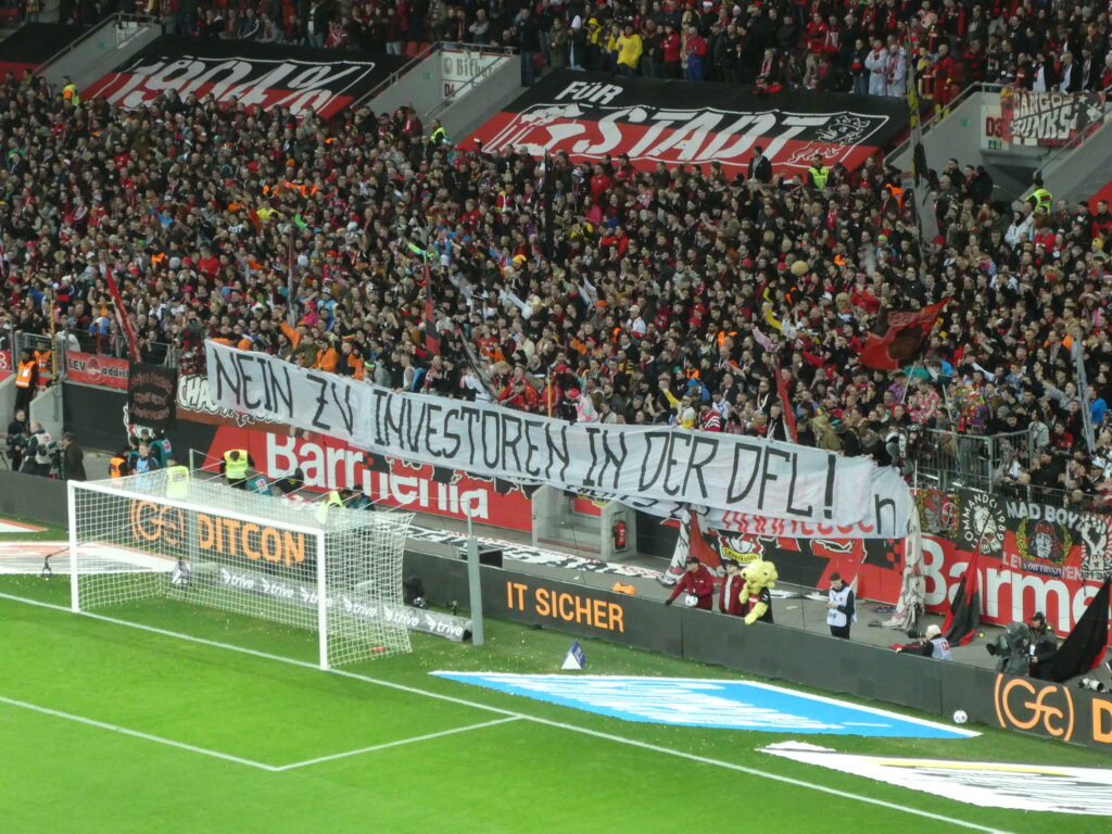 Das Spitzenspiel der Bundesliga zwischen Bayer 04 Leverkusen und dem FC Bayern München wurde am Samstagabend mit einer sechsminütigen Verspätung angepfiffen. Grund hierfür waren Proteste de Nordkurve Leverkusen gegen die Investoren-Pläne der DFL.