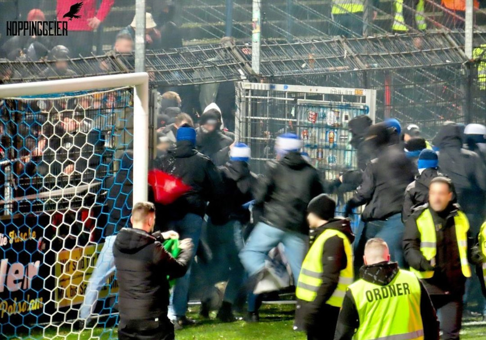 Bei den folgenden Auseinandersetzungen kamen Pyrotechnik und Fahnenstangen zum Einsatz. Die Regionalliga-Partie wurde wegen der Vorfälle mit wenigen Minuten Verspätung angepfiffen. Die vermummten Angreifer flüchteten anschließend wieder zurück in die Nordkurve, wo schnell eine Blockfahne ausgebreitet wurde. Zum Zeitpunkt des Angriffs hatten die FSV Zwickau ihre Materialien wie Zaunfahnen noch gar nicht aufgehangen.