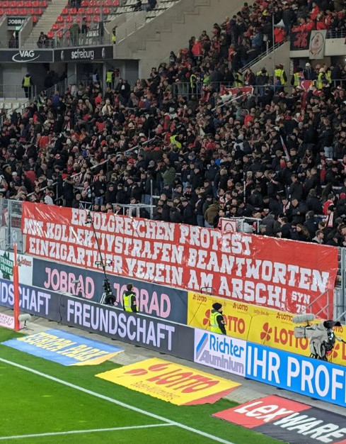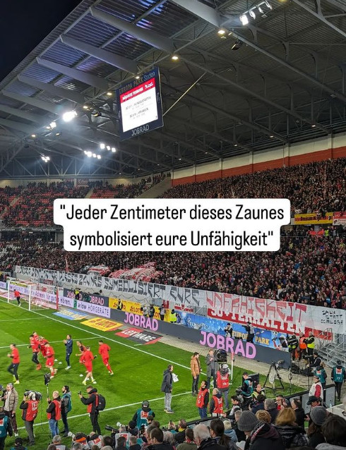 Darin wurde dem SC Freiburg vorgeworfen mit der Zaunerhöhung Symbolpolitik zu betreiben. Der Sport-Club reagiere auf die friedlichen Fanproteste mit kleinen Flugzeugen nun mit einer Machtdemonstration, statt auf Dialog zu setzen.