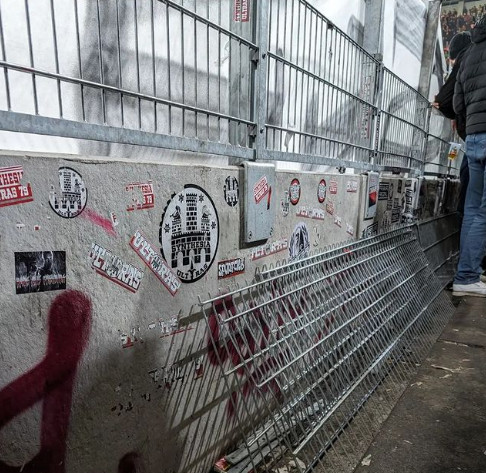 Und dann folgte die Reaktion der Ultras auf die Erhöhung des Zaunes. So wurden die Zaun-Elemente, die den Zaun vor der Südtribüne erhöhten von den Ultras beim Freitagabendspiel der Bundesliga wieder abmontiert und in der Kurve gelagert. (Faszination Fankurve, 02.03.2024)