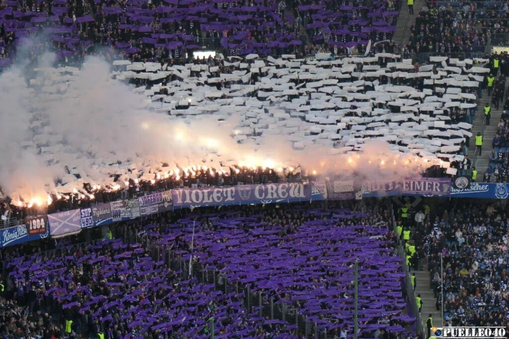 Auf dem Rasen setzte sich der abstiegsbedrohte VfL Osnabrück im gestrigen Auswärtsspiel beim Aufstiegskandidaten HSV vor 57.000 Fans im ausverkauften Volksparkstadion mit 2:1 durch. (Faszination Fankurve, 04.03.2024)