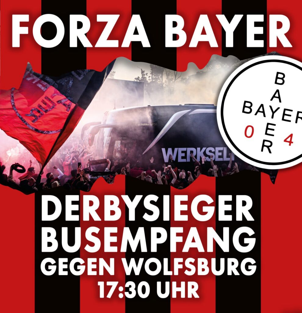 Damit dies auch am anstehenden Wochenende so bleibt und erste Meisterschaft in noch greifbarere Nähe gelangt, hat sich die Fanszene von Bayer 04 Leverkusen die nächste Aktion überlegt. Zum Heimspiel gegen den VfL Wolfsburg rufen Ultras Leverkusen und der Nordkurve12-Dachverband aus der Bayer 04-Fanszene zum „Derbysieger Busempfang gegen Wolfsburg“ auf. Anpfiff des Heimspiels gegen den VfL Wolfsburg ist am Sonntag um 19:30 Uhr. (Faszination Fankurve, 08.03.2024)