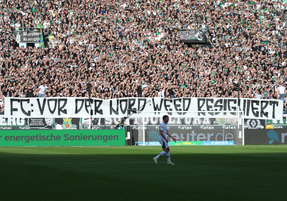 Den Abstiegskampf begleitet die Kölner Fanszene mit dem Motto „FC jeff Jas – he weed nit resigniert“, worauf die Ultras von Borussia Mönchengladbach nach knapp zehn gespielten Minuten im Derby mit einem Spruchband reagierten. „FC: Vor der Nord weed resigniert“, war dort in Anspielung auf den Vorabend zu lesen. Später stieg in der Nordkurve außerhalb des Bereichs der Ultras zudem kurz etwas grüner Rauch auf.